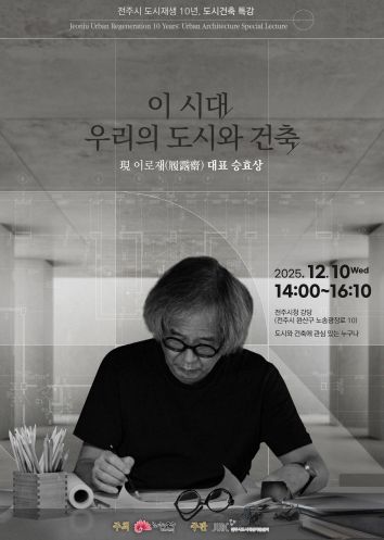 특히 오는 12월 10일 오후 3시, 전주시청 강당에서 열리는 마지막 강연에는 대한민국 대표 건축가인 승효상 이로재(履露齋) 대표가 ‘이 시대 우리의 도시와 건축’을 주제로 전주시민과 만날 예정이다.