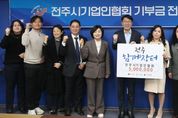 [전주시민신문] 전주지역 기업인들이 지역 상권과 산업단지 노동자들을 응원하는 ‘전주함께장터’ 프로젝트에 동참했다. 전주시와 전주시기업인협회(회장 강은주)는 24일 전주시장실에서 우범기 전주시장과 협회 관계자 등이 참석한 가운데 ‘전주함께장터 기부금 전달식’을 가졌다. 이 자리에서 전주시기업인협회는 회원사들의 뜻을 모아 마련한 총 500만 원의 기부금을 시에 전달했다. ‘전주함께장터’ 프로젝트는 기업과 공공기관, 민간단체, 시민 등 다양한 주체와 협력해 지역 소비를 촉진하고, 골목상권과 전통시장, 노동자 등 지역경제의 주요 축을 지원하는 범시민 운동이다. 현재 지역 상권 매출을 높이는 동시에, 나눔 문화를 확산해 지역경제 회복을 도모하는 릴레이 형식으로 추진되고 있다. 이날 후원한 기부금은 ‘전주함께장터’ 프로젝트를 통해 추진 중인 산업단지 근로자 아침밥 제공 사업 등 취약 근로자 복지 지원 등에 활용될 예정이다. 시는 앞으로도 ‘전주함께장터’ 프로젝트를 통해 기업과 시민이 함께하는 착한 소비 운동을 지속적으로 추진하고, 산업단지 근로자 등 노동 취약계층을 응원하는 다양한 프로그램을 확