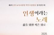 [전주시민신문] 전북특별자치도전주교육지원청은 오는 11월 1일 오후 4시 전주학생교육문화관에서 전주학부모합창단 정기연주회를 개최한다고 30일 밝혔다. 이번 정기연주회는 ‘인생이라는 노래 – 삶을 위한 작은 위로’를 주제로, 음악을 통해 인생의 전세대에 걸친 삶의 여정을 돌아보고 세대와 세대를 잇는 따뜻한 울림의 장을 마련하고자 한다. 연주회는 '유년시절', '청춘', '우리, 지금', '인생’의 네 개의 테마로 구성됐으며, 각 무대는 인생의 다양한 순간을 음악으로 표현해 교육가족과 관객들에게 깊은 감동을 선사할 예정이다. 여성합창단(회장 여경아, 단원 53명)과 남성합창단(회장 도내현, 단원 27명)이 함께 무대에 올라 '카치니 아베마리아', '노을', '바람의 노래', '백만송이 장미', 'Coro di Schiavi Ebrei', 'Gaudeamus(기뻐하라)' 등 클래식과 대중이 어우러진 곡들을 풍성한 하모니로 들려준다. 이번 공연은 지휘자 이우진, 반주자 박찬근·박연진이 함께하며 전문성과 예술성을 더했다. 공연에는 학부모, 학생, 시민 등 약 500여 명이 함께해 세대가 어우러지