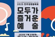 [전주시민신문] 전주시는 오는 11월 1일 오전 11시, 전주 남중학교 운동장에서 ‘2025 전주 생활문화예술동호회 축제’를 개최한다. ‘생활문화예술동호회’란 전문 예술인이 아닌 일반 시민들이 여가나 취미활동을 통해 자발적으로 모여 예술을 즐기고 창작활동을 이어가는 순수 아마추어 예술 모임으로, 지역 주민의 문화 향유 기회를 넓히고 일상 속 예술 문화를 확산하는 데 중요한 역할을 하고 있다. 이번 행사는 올 한 해 다양한 분야에서 활발히 활동해 온 전주시 생활문화예술동호회 회원들이 전시와 체험, 공연 등 다채로운 프로그램을 선보이며 시민과 소통하는 자리로 꾸며질 예정이다. 구체적으로 축제 현장에서는 △회화·공예·사진 등 회원 작품 전시(5팀) △공예 체험과 시민 참여형 프로그램(8팀) △생활문화센터의 기획체험(3팀) △왼손 그림 그리기와 행복사진관 등 체험 부스가 운영된다. 또한 음악과 무용, 밴드 등 12개 팀의 공연 무대가 이어져 시민들이 일상 속 예술을 가까이에서 즐길 수 있는 시간을 선사한다. 특히 올해 축제의 주제는 ‘모두가 즐거운 예술’로, 취미와 창작활동을 통해 얻은 행복