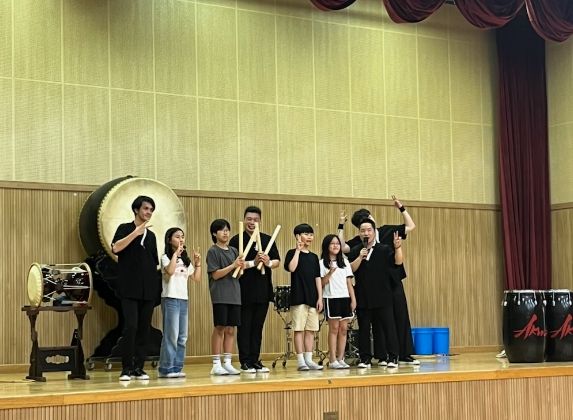 이날 학생들은 7곡의 창작 타악 연희곡을 감상한 후 무대에서 대북을 직접 쳐보는 등 타악기 체험도 즐겼다.
