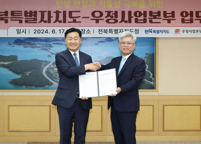 [전주시민신문] 전북특별자치도와 우정사업본부가 도민들의 민생 안정과 저출생 극복에 상호 협력하기 위한 업무협약을 맺었다.