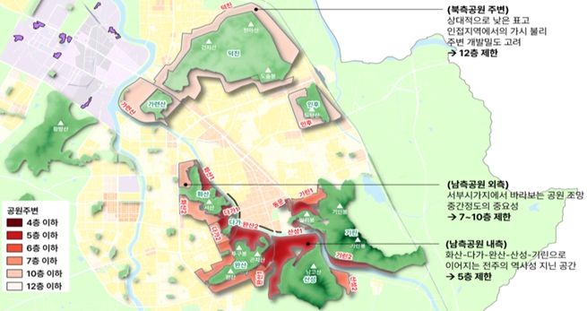 시는 주민설명회 등 주민 의견 수렴 절차가 마무리되면 주민들이 제안한 의견을 검토하고, 이후 전략환경영향평가와 전주시의회 의견 청취, 전주시도시계획위원회 심의 등의 절차를 거쳐 올 연말까지 공원 주변 고도지구 재정비를 완료한다는 구상이다.