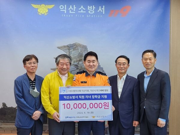 [전주시민신문] (사)이웃사랑의사회 익산지회와 익산시 미즈베베병원이 18일 전북특별자치도평생교육장학진흥원에 익산시 소방서 직원 자녀를 위한 장학금 1000만원을 기탁했다.