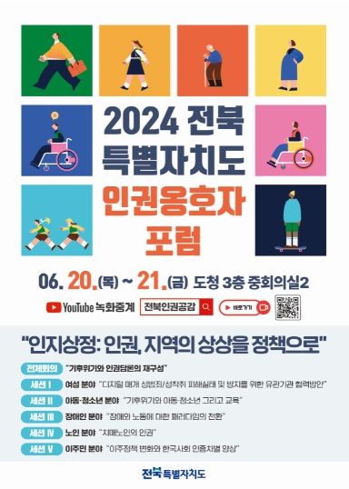 [전주시민신문] 전북특별자치도가 20일부터 2일간 도청 중회의실에서 『2024 전북특별자치도 인권옹호자 포럼』을 개최한다고 밝혔다.