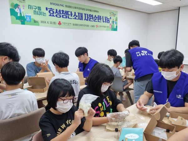 효성첨단소재(주) 전주공장 직원들은 또 이날 봉사활동에서 보육원생들에게 ‘지구를 지키는 효성첨단소재 자원순환’을 주제로 ‘탄소 줄이기’와 ‘자원재순환’의 가치를 알렸다.