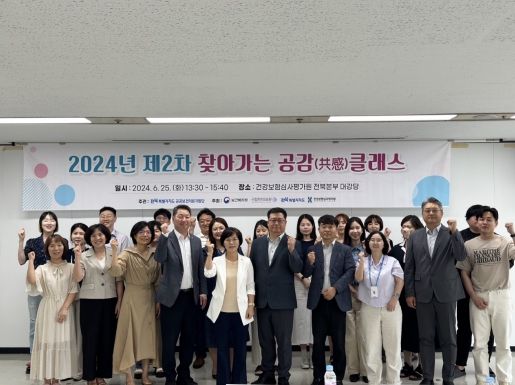 [전주시민신문] 전북특별자치도는 ‘전북특별자치도 공공보건의료지원단’과 함께 25일 건강보험심사평가원 전북본부 임직원 30여 명을 대상으로 ‘2024년 제2차 찾아가는 공감(共感)클래스’를 개최했다고 밝혔다.