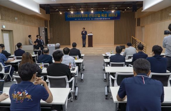 시는 25일 캠틱종합기술원 첨단누리홀에서 ‘CES 2024’ 참여기업과 전주지역 스타트업 및 수출기업 관계자 등 60여 명이 참석한 가운데 ‘CES2025 미래 선도산업 육성 세미나’를 개최했다.