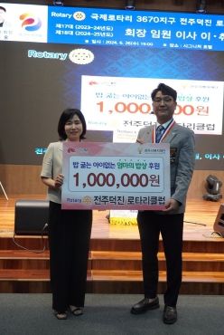 [전주시민신문] 전주덕진 로타리클럽은 지난 26일 제18대 송인관 회장의 취임을 기념해 전주시복지재단에 ‘엄마의 밥상’ 사업을 위한 성금 100만 원을 기탁했다.