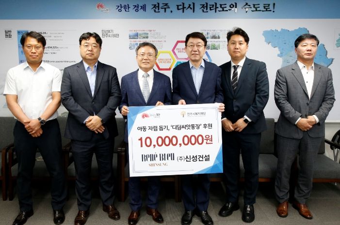 2일 전주시에 따르면 신성건설은 이날 전주시 아동복지과에 디딤씨앗통장 후원금 1000만 원을 전달했다.