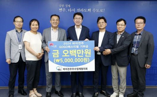 이 자리에서 바이전주우수업체협의회는 지난 4월 ‘바이전주 GOGO 페스티벌’의 수익금을 소외계층을 위한 각막 이식 수술비 등을 지원하는 (사)온누리안은행에 전달했다.