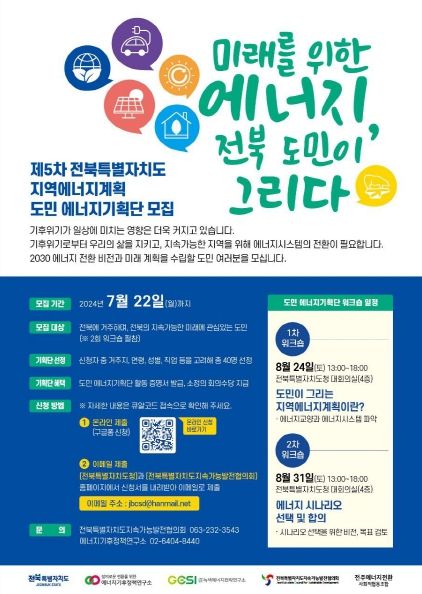 전북특별자치도는 오는 22일까지 도민 에너지기획단을 모집할 계획이며, 전북 도민이면 누구나 신청할 수 있다.