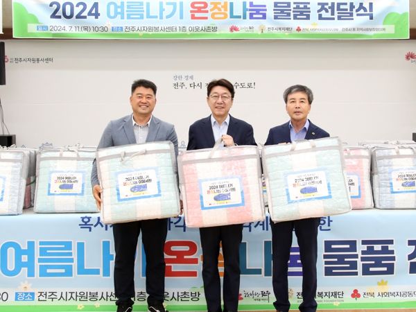 우범기 전주시장은 “저소득 취약계층이 무더운 여름을 건강하게 보낼 수 있도록 나눔을 실천해주셔서 감사하다”면서 “폭염과 폭우 등 여름철 재해로 전주시민들이 아픔을 겪지 않도록 예방과 대처에 총력을 다하겠다”고 말했다.