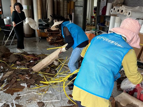 센터는 많은 비가 내린 10일부터 군산‧익산‧완주 일대 주택가에 400여명을 투입하여 수해복구활동에 나섰으며, 수해를 입은 익산시 여산면과 완주군 운주면 주민 300여분의 급식을 지원하는 등 힘을 보탰다.