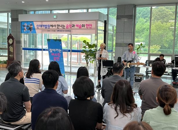 이번 공연은 지역 예술인들의 재능기부를 통해 이루어졌으며, 점심시간 약 40분간을 활용해 교육생과 원내 직원 300여명이 힐링하고 즐길 수 있도록 마련됐다.