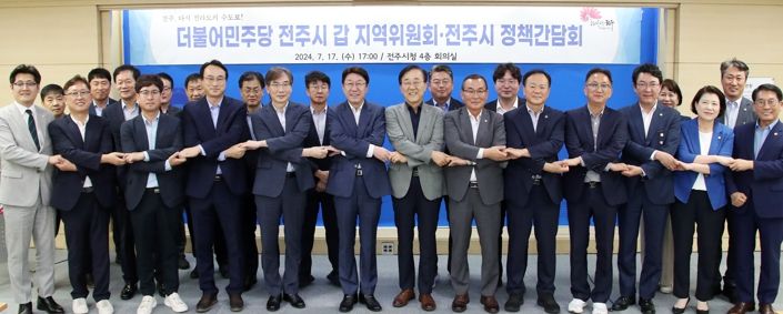 시와 민주당 전주시갑 지역위원회는 17일 시청 회의실에서 우범기 전주시장과 김윤덕 국회의원, 최주만 전주시의회 부의장을 비롯한 도·시의원 등이 참석한 가운데 정책간담회를 개최했다.