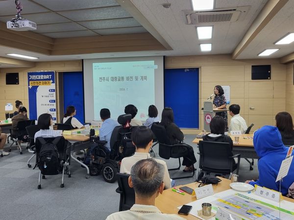 이번 워크숍은 △‘지속가능한 도시와 도로위의 정의로움’을 주제로 한 강연 △백미영 전주시 버스정책과장의 ‘전주시 대중교통 비전 및 계획’에 대한 설명 △기린대로 BRT실시설계안에 대한 용역사의 설명 △분야별 의견수렴을 위한 조별 활동 등의 순으로 진행됐다.