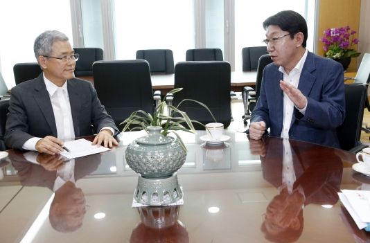우범기 전주시장은 22일 전남 나주시에 위치한 한국전력공사 본사를 방문해 김동철 한국전력공사 사장과 기후 변화와 에너지 패러다임의 전환에 대응하기 위해 탄소 중립 및 에너지 신산업 분야에 대해 시가 나아갈 방향과 역할 등에 대해 논의했다.