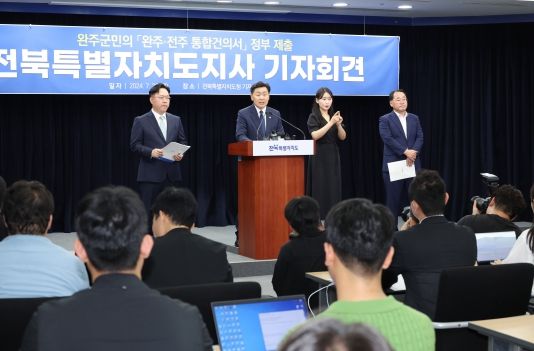 김 지사는 이날 도청 브리핑룸에서 가진 기자회견에서 “완주 전주 통합시를 광역시에 버금가는 강하고 단단한 전북의 중추도시로 만들겠다”고 강조했다.