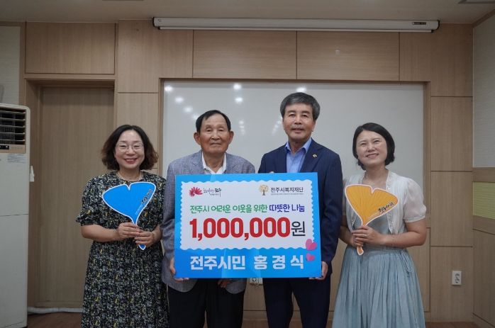 23일, 전주시복지재단(이사장 윤방섭)에 따르면 전주시 중앙동에 거주하는 홍경식 씨(81세, 남)가 이날 형편이 어려운 전주시민들을 위해 사용해달라며 성금 100만 원을 재단에 기부했다.