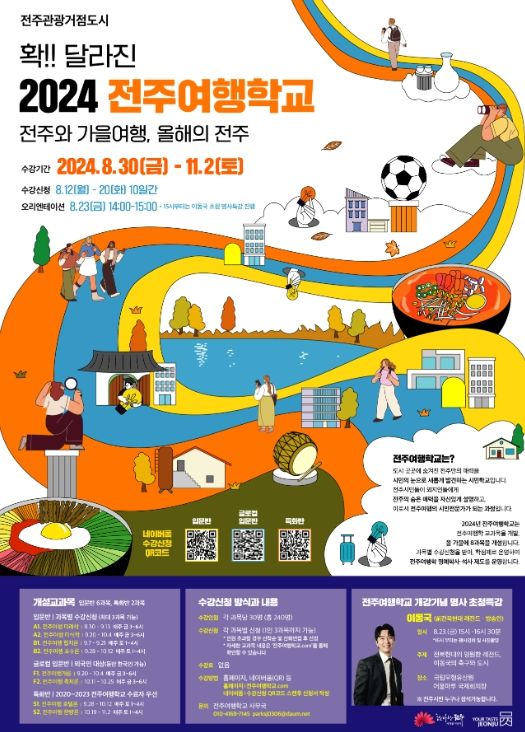 참가 신청은 8월 12일 부터 8월 20일까지 ‘전주여행학교.com’ 및 QR코드 스캔을 통해서 가능하며, 모든 프로그램은 무료로 운영된다.