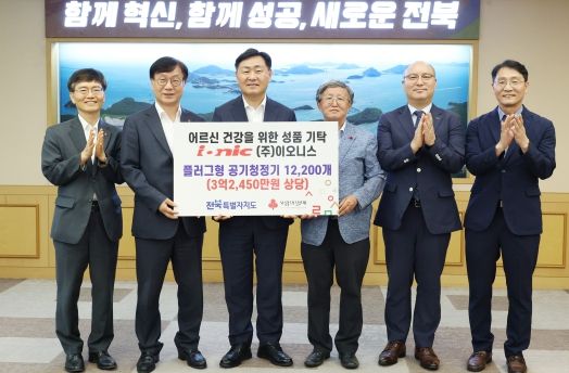 전북특별자치도에 따르면 ㈜이오니스는 13일 전북특별자치도청을 방문해 도내 저소득 독거노인들을 위해 플러그형 공기청정기 12,200대를 기부했다고 밝혔다.