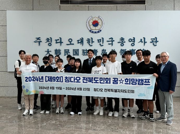 '제9회 중국 칭다오 청소년 꿈·희망 캠프'는 재중국 칭다오 전북도민회(김제신 회장) 초청으로 전주효문중학교 유영민 학생 등 도내 14개 시·군에서 각 1명씩 모두 14명의 모범 청소년을 선발하여 중국 역사·문화 유적지 방문 등 해외 견학 기회를 제공하여 참여 청소년들의 글로벌 마인드를 함양하고 국제적 견문을 넓힐 수 있는 기회를 마련코자 추진됐다.