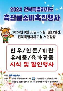 [전주시민신문] 전북특별자치도는 오는 8월 30일부터 9월 1일까지 도청 서편광장에서 '2024년 축산물 소비촉진 행사'를 개최한다.