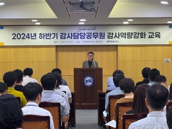 [전주시민신문] 전북특별자치도 감사위원회는 감사 전문성 및 공정성 제고를 통한 감사 품질을 향상하고, 감사 신뢰도를 높이기 위해 ‘2024년 하반기 감사역량강화 교육’을 실시했다고 29일 밝혔다.