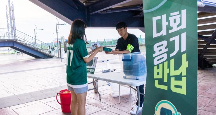 또한, 다회용기 반납과 올바른 분리배출을 실천하는 팬들에게는 축구 굿즈, 음료 쿠폰 등 다양한 경품이 제공되는 이벤트도 진행됐다. 이를 통해 관중들이 적극적으로 분리배출에 참여하도록 유도하고, 다회용기 사용 문화가 더욱 빠르게 정착될 수 있도록 한다는 계획이다.