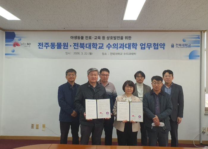 [전주시민신문] 전주동물원은 23일 전북대학교 수의과대학과 야생동물 의료지원 체계 고도화 및 전문인력 양성을 통한 동물복지 향상과 수의학 발전을 위한 업무협약(MOU)를 체결했다.