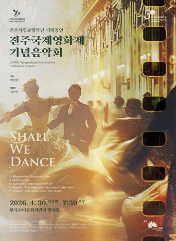 [전주시민신문] 전주시립교향악단은 전주국제영화제를 기념해 오는 30일 오후 7시 30분, 한국소리문화의전당 연지홀에서 기획공연으로 전주국제영화제 기념 음악회인 ‘SHALL WE DANCE’를 선보인다.