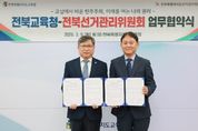 [전주시민신문] 전북특별자치도교육청이 학생 선거교육 및 민주시민교육 활성화를 위해 전북특별자치도선거관리위원회와 협력 체계를 구축한다. 유정기 교육감 권한대행과 경범훈 전북선관위 사무처장은 9일 도교육청 5층 회의실에서 양 기관 관계자 10여 명이 참여한 가운데 ‘주권자시민교육 활성화를 위한 업무협약’을 체결했다. 이번 협약은 ‘교실에서 배운 민주주의, 미래를 여는 나의 권리’를 비전으로 선거의 의미와 원칙을 이해하고, 자율과 책임의 균형을 갖춘 시민으로의 성장을 돕기 위해 마련됐다. 협약에 따라 양 기관은 △미래·새내기 유권자 대상 선거교육 및 민주시민 교육 활성화 △교원 대상 참정권교육 관련 연수 프로그램 공동기획·운영 △모의선거와 토론수업, 체험형 교육 중심 참여형 시민교육 프로그램 운영 등 3개 분야 사업을 공동 추진한다. 전북교육청은 학교 현장과의 연계, 교육 대상자 참여 지원 및 교육 여건 조성을 담당하고, 전북선관위는 도내 학생과 교원을 대상으로 선거 및 참정권교육 관련 전문 인력과 교육자료, 프로그램 운영을 맡는다. 특히 단순히 선거와 정치참여를 배우는 것을 넘어 국가의 주