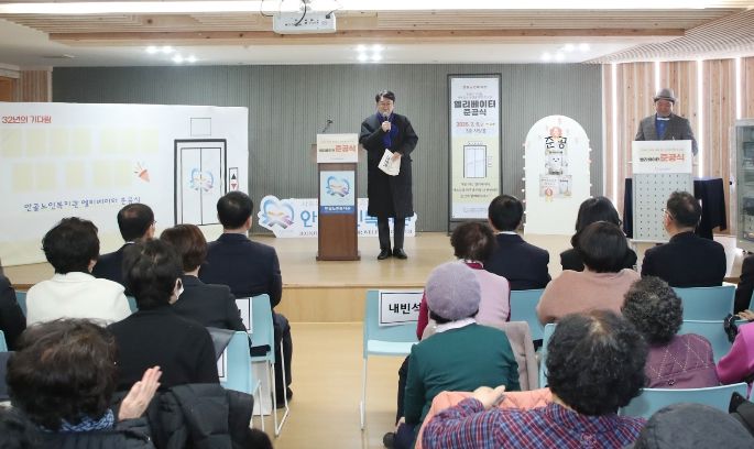 안골노인복지관은 6일 복지관 이용자와 지역 주민 등 100여 명이 참석한 가운데 복지관 승강기 지하층 증축사업의 준공식을 가졌다.
