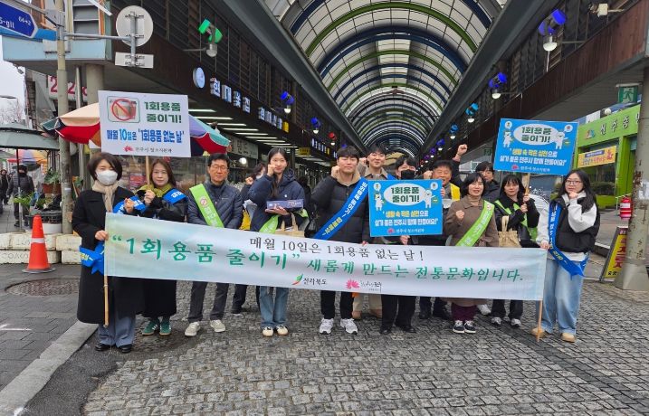 [전주시민신문] 전주시는 11일 설 명절을 앞두고 많은 시민이 찾는 전주 중앙시장 일원에서 시민과 상인들을 대상으로 생활 속 1회용품 줄이기를 위한 ‘1회용품 없는 날’ 캠페인을 전개했다.