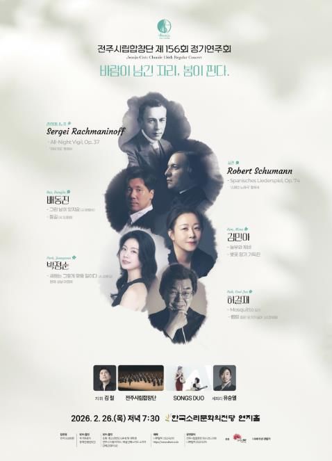 [전주시민신문] 전주시립합창단은 오는 26일 오후 7시 30분, 한국소리문화의전당 연지홀에서 제156회 정기연주회 ‘바람이 남긴 자리, 봄이 핀다’를 선보인다.
