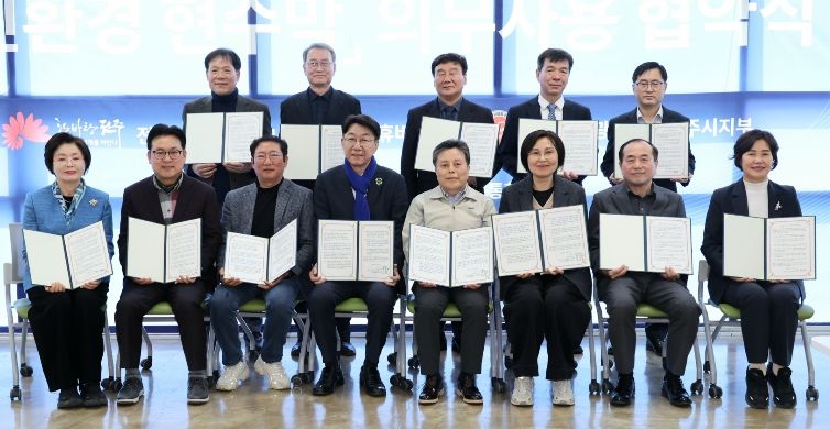 또한 이날 협약식에는 전주시 지정게시대를 관리하는 전주시시설관리공단 등 전주시 산하 8개 출연기관도 동참해 친환경 현수막 사용 확산과 공공부문 친환경 전환에 뜻을 함께 했다.