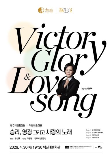 [전주시민신문] 전주시립합창단(예술감독 겸 지휘자 김철)은 4월 ‘문화가 있는 날’을 맞아 오는 30일 오후 7시 30분, 덕진예술회관에서 기획 공연인 ‘승리, 영광 그리고 사랑의 노래’를 선보인다.
